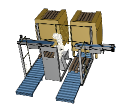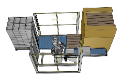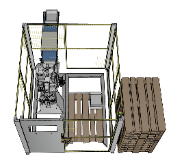 pallet PACker zum Depalettieren von E2 Kisten mit Puffer, angetriebener Rollenbahn und Leerpalettenmagazin. |